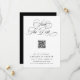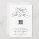 Det romantiska manuset spara datum meddelande är perfekt för ett enkelt bröllop. Den minimalistiska svarta och vita designen har elegant och romantisk kalligrafiskrift med QR-kod. Om du vill ha en mer avancerad anpassning av den här designen klickar du på BLUE DESIGN VERKTYG ovan!