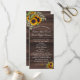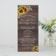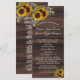 Rustik design för bröllopskort med akvarellsolrosbuketter, en halvgenomskinlig form med en texturerad ram, pilar med hjärtan och solrosor som avdelare, allt på en gammal ladugårdsbakgrund. Använd verktyget Anpassa för att lägga till din information. Matchande föremål finns i min Rustic Sunflowers Old Barn Collection.