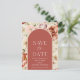 Meddela din speciella dag med detta romantiska Spara datum-kort. Med en modern valvdesign på framsidan och en vacker blomsterbukett på baksidan är det perfekt för att sätta tonen för din bröllopsdag.