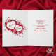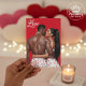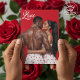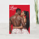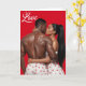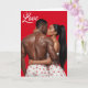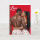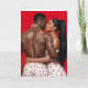 Fira kärlek med detta intima kort som visar ett svart par i en öm omfamning, iklädda matchande vita kläder med röda hjärtan. Deras kärlek lyser mot en mjuk, varm bakgrund - perfekt för Alla hjärtans dag, årsdagar eller någon speciell romantisk stund.