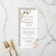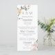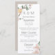 Denna eleganta och romantiska menyn har en blomsterdesign med rosa äppelblom. En gren med blommor är placerad i det övre vänstra hörnet, med två rosa blommor i det nedre högra hörnet. Du kan ersätta menyalternativen med de maträtter du väljer. Den är lämplig för en frukost, brunch, lunch eller middag, eller för ett bröllop eller bankett.