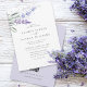 Romantisk vattenfärg lavendel blomsterbröllopsinbjudan med QR-kod på baksidan.