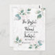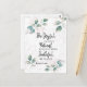 En inspirerande citatskriptur vykort visar en vacker akvarellblommig design med blå och rosa blad och har med bibelvers Romarbrevet 12:12, "Var glada i hoppet, uthärdiga i lidande, trogna i bönen." _