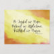Vykort med inspirerande citattecken visar en brunt och ljust grönt abstrakt. Den innehåller en uppmuntrande bibelverse från romer 12:12: "Var glatt i hopp, patient i lidande, trogen i bön." Hälsning, bön kan vara personlig eller raderas för ett handskrivet meddelande.