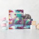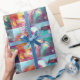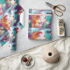 Scen från Romeo- och Juilettragedin av William Shakespeare.Ursprunglig vattenfärgning av contemporary med guldfolie och iridescent färg i ljust lila, rosa, grönt, gult orange, teal, turquas, vit ..Målning av Bulgan Lumini (c)