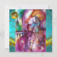 Scen från balkongen i tragedin Romeo och Julia av William Shakespeare .Ursprunglig samtida akvarellmålning med guld-, silverfolie och iriserande färger i ljust lila, rosa, grönt, gul orange, turkos, turkos, vitt .Målning av Bulgan Lumini (c).Det här coola och konstnärliga kortet är perfekt för bröllop, brud shower, årsdagsfester, kostymbaler, romantiska förlovningar, save the date-kort, cocktails, firanden, årsdagar, sammankomster,