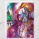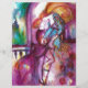 Balkony-scen från Romeo- och Juilettragedin av William Shakespeare.Ursprunglig vattenfärgning av contemporary med guldfolie och iridescent färg i ljust lila, rosa, grönt, gult orange, teal, turquas, vit ..Målning av Bulgan Lumini (c)