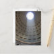 I detta vykort visas bilden av taket för Pantheon i Rom. Ett gammalt tempel som hedras alla gudar. Det cirkulära fönstret och ingången är de enda ljuskällorna i insida.