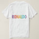 Fet Fanfare: Den här t-shirt-skjortan visningar stolt namn "Ronaldo" i ett dynamiskt system för multifärgad. Brev skulle kunna vara en regnbåge med fet nyans, eller använda som kontrasterar färg-kombinationer för en dynamisk effekt. Kanske är det så att inslag som fotbollar, rand, eller ett stiliserat nummer 7 (som vanligtvis förknippas med Ronaldo) i designen används för att subtilt referera till sin sport. Denna utformning är ett perfekt för fläkt att visa sitt stöd för den legendariska fotbollsspelaren.