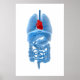 Röntgenbild av inre organ med hjärta framhävt i rött.