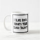 Lustigt slogan på mugg som säger "I Slate Tak. Vad är din toppen talang?" Mugg för en tak. Svart och vit fet text.