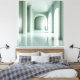 Ein minimalistischer architektonischer Raum, geprägt von vertikalem Rhythmus, weichem Licht und einer spiegelnden Bodenfläche, die die klare Geometrie verstärkt. Bögen und Säulen erzeugen Tiefe und Balance, während die skulpturale Kugel einen ruhigen Fokuspunkt setzt. Dieses Motiv verleiht modernen Wohnräumen und professionellen Büros eine klare, zeitgemäße Atmosphäre.