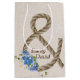 Rope ampersand-symbol med blå blombouquet och par namn på mjuk texturerad bakgrund för en bröllop- eller jubileumsgåva