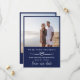 Nautisk bröllop gifter sig datumet med ett hjärtrep i vitt på marinblått. Lägg till två foton, ett på vardera sidan. Dubbla sidosatte nautisk personlig gifter sig bröllop spara datum med foton.