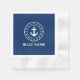 Nautical Boat Namn Anchor Rope Stars Navy Blue Cocktail Napkin