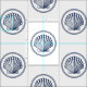 Ett biet av tyg som presenterar en unik marin, och vit mönstrar visning en roped vintagesnäckskalillustration.