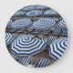 Ror av randiga strandparaplyer med solsängar stor klocka