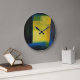 Den här originalmålningen av abstrakten är målad av mig och undertecknad framför, grönt, gult, och abstrakt på klockan.
