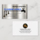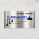 Ett framhölje i silver har en kreativ vatten-ledningskonstruktion med "läckande rör" som knappar för att lagra kortinformation. Ovanför den här rörledningen ljuger namn i blått med din prestigefyllda höger i namn i det övre hörnet. I ett vitt omslag står en guld-logotyp som du kan använda på högst upp. Detta följs av namn, kontaktinformation och ett slogantaggradsalternativ för att publicera dina tjänster. En underbar utformning för rörmokare till använda.