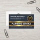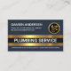 Ett mörk blått omslag har ett par guld rand linjer nära kortets bas. Här ljuger du företaget namn PLUMBING SERVICE och den typ av tjänster som du kan tillhandahålla. Du kan ändra bildtextkommentarerna till båda dessa artiklar till kostym till ditt eget tjänstebehov. Över i det övre lämnat hörnet finns ditt prestigefyllda namn och kontaktuppgifterna. En logotyp för läckande rör från guld, använda kan man säga, är i motsatt ände. På andra sidan, i ett vitt omslag, står logotypen guld högst upp, följt av kontaktuppgifter och ett sloganalternativ. Ett kort för underbar professionell för rörmokare till använda. #rörmokare #plumbers #plumbingservice #plumbingandsuppvärmning #homeplumbering #plumbingprovider #pipe #Vattenpipe #pipefitter #faucet