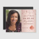 På framsidan: Lägg till ditt eget vertikala foto av den utexaminerade. En rose gold, rodnande bakgrundsfärg, dekorerad med falska guldstjärnor. Anpassa och lägg till namn och datum. Namnet och texten: Spara datum skrivs med en modern handskriven stilspråk.