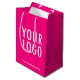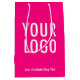 Rosa 10 tums presentpåse med egen logotyp, mediums