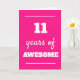 Modern rosa 11 år av fantastisk-kort för hennes 11-årsdag, som du enkelt kan anpassa insidan av kortmeddelandet om du vill.