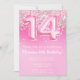 Rosa 14:e födelsedagsinbjudan Girly Rosa Glitter födelsedagsfest inbjudan för en 14-årig flicka med modernt skrivmanus och fotopilballonger för roligt.