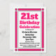 Skicka inbjudningar till firande på 21:a födelsedag med den här Rosa inbjudan på 21:a födelsedag. Den kan anpassas med din personliga information.