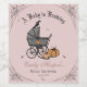 En elegant rosa "A Baby is Brewing" Utformning av barndusch i svart bläck av Nathalie Portet. Innehåller en antikisk Victorian baby-vagn, svart kråka, pumpor och spindelnät på elegantens rosa-bakgrund. Namn, Händelse- och händelsemedatum går att redigera.