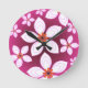 Rosa abstrakt blommönster | Estetiska blommor Rund Klocka