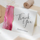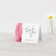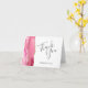 Tack vare det här bröllop-kortet i elegant har du ett rosa vattenfärgsagat gräns som trimmas med faux guld glitter. Anpassadet kombinerar ord "Tack" i handskriftsskript för kol-grått och namnen för bruden och groomen i kursivt teckensnitt på vit bakgrund.