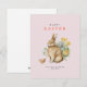Skicka påskhälsningar till dina nära och kära med detta vackra akvarellkort i pastelljus med en kanin, höna och blommor. Detta kort är perfekt för att tillföra glädje och skönhet till dina högtidliga hälsningar.