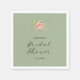 Denna servett för bröllopsfest har en enkel design med en rosa akvarellblomma på en salvia grön bakgrund. Anpassa denna stilrena servett med brudens namn och datum för festen.