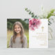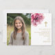 Rosa akvarellblomma Foto Första kommunion Tack Kort