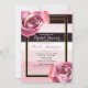 Rosa akvarellrosor Svart vit randig Modern Inbjudningar