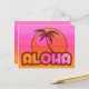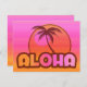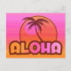Hawaiisk design med handflatan träd och solnedgång i skuggor av rosa och orange. I texten från Retro stil står det ALOHA. Bakgrund för övertoning av rosa och orange. Anpassa den med egen text. Behålla som tar semester hela året. PinkInkArt-original!