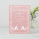 Elegant och enkel Bröllopsinbjudan med spara datum som visar ett par älskande fåglar som vilar på en blommande vinstock mot en rosa bakgrund. Denna design är ett unikt val för att tillkännage ett modernt bröllop. Lätt att anpassa med dina bröllopsdetaljer. Klicka på "Anpassa" för att hitta fler anpassningsalternativ.