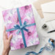 Dekorativ rosa och anemonfärgad vind blommar vattenfärgen i konstgjord omslutning papper. Perfekt för att lägga till en blommigt för rosa till gåvor. © Watercolor art and design by Sarah Trett for www.mylittleeden.com on zazzle.