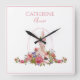 Rosa Animal Bunny Blommigt Girly Namn Fyrkantig Klocka