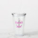 Den andra sidan av tumblern kan anpassas med ditt namn och datum för resan.