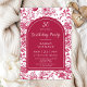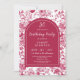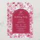 Denna vackra inbjudan och inbjudan från elegant födelsedagsfest har en antika rosa Chinoiserie mönster. Texten kombinerar handskript och serif typsnitt för en snyggt och ett modernt utseende. Det här är perfekt för en födelsedagsfest i vår eller sommarträdgård.