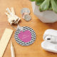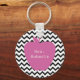 En lärargåva med illustration av ett rosa äpple över en svart och vit chevronbakgrund. Anpassa med ditt namn över äpplet.