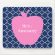 En gåva för lärare som presenterar en illustration av ett rosa äpple över en marinblå quatrefoilbakgrund. Personifiera med ditt namn på äpplet.