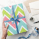En skarp aqua, kalk och rosa zig zag mönster dekorerar denna pappra förpackning. Den här pappra är underbar för en födelsedag, Påsk, en babydusch, jul, flickor, tonåringar osv... Designen kommer från originalteckningen.