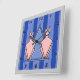 Rosa Art Deco-katter på blåstrimlad bakgrund Fyrkantig Klocka