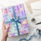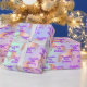 Elegant, giftig, glamorös stil party-gåva som är papper för en tioårsdag (eller någon ålder). Trendigets holografiska färgad med enmajs och regnbåge färg i rosa, lila, mynta grönt. Dekorerad med droppar i rosa, lila och en guldmajs i mönster. Anpassa och lägg till namn och ålder 10. Lila färgad brev.