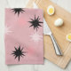 Denna Rosa Starbursts kökshandduk har hela halvsekelns moderna roligt av ditt mormas kök, minus det klibbiga linoleum. Kitschydesignen har en rosa bakgrund med guld-spekkler och slumpmässigt placerade stjärnsprängningar i svart och två skuggor av rosa. Denna vintage inspirerade mönster är modet tillräckligt för att vara snyggt och tillräckligt för att vara klassisk. lite kärlek med denna minimalistiska utformning.
