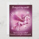 Denna fantasi visar en rosa viftande häst (Pegasus) på flykt med magiskt ljus överallt. Den bedövande mytiska varelsen har också några subtila nyanser av rött och lila, med en vacker rosa-, rött- och lila gradient. Bakgrunden är röd mörk. Texten på framsidan och baksidan är redigerbar. På inbjudan står det: "En magisk dag väntar! Sprid din vingar och flyga till Kassandras rosa Pegasus födelsedagsfest!" På baksidan innehåller texten datum, OSA e-post och adress. Det är perfektens inbjudan till en födelsedagsfest för någon som kärlek Pegasus, fantasi och/eller hästar!