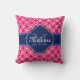 Raspberry rosa white Moroccan lattice mönster med ett inledande marinmonogram. Ovanpå den ljusa rosan och vita trellis är mönster en marin blå och vit etikett med en brev- och namn-mall som du kan anpassa dig till.
